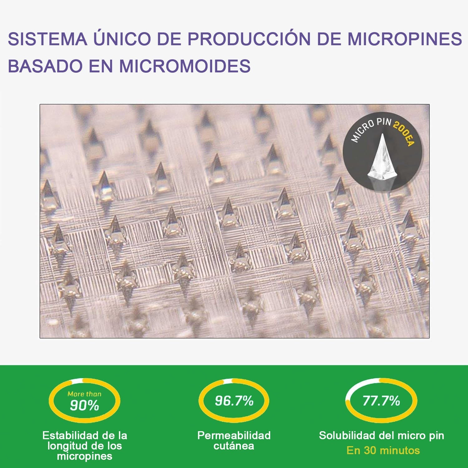 Each needle is 0.27 mm long, just 1/7 the thickness of a hair, and is made of dissolvable medication. These microneedles are precision-engineered using state-of-the-art manufacturing techniques to ensure a painless and effective experience, delivering the active ingredients directly to the skin.