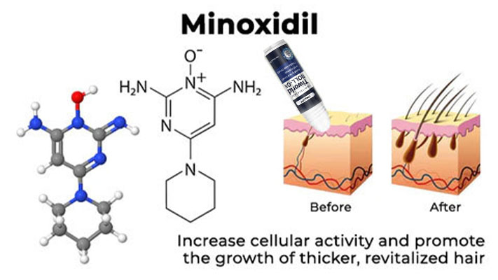 A topical treatment for hair loss is minoxidil. It is a safe active component that has received FDA approval. In the locations where it is applied, it widens blood vessels and enhances blood flow.